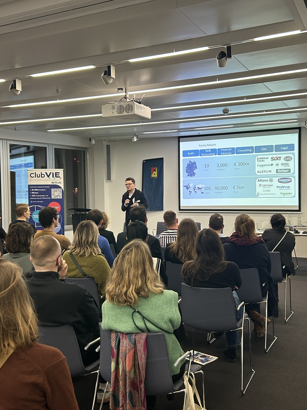 👉 Le Club V.I.E Berlin, présidé par Hadrien Herzog, eu le plaisir d’organiser une rencontre inoubliable avec nos talents, partenaires et alumni à Berlin ce mardi 12 novembre 2024 au sein des locaux de Forvis Mazars in Germany. Une soirée riche en échanges, témoignages inspirants et belles rencontres, réunissant des profils divers venus partager leur parcours et leurs aspirations. 💼
