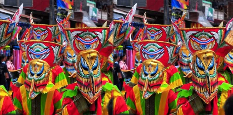 Cette légende se perpétue à travers des danses, des chants et des défilés hauts en couleur, tissant un lien entre les participants et leur riche passé spirituel et culturel. Les masques de Phi Ta Khon, incarnant les esprits, symbolisent la croyance que le prince est escorté par une procession de fantômes et d’entités surnaturelles.